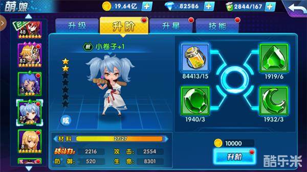 1、升阶需要萌娘达到对应的等级才可以进行;