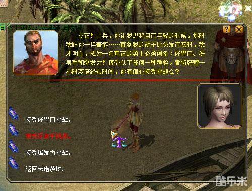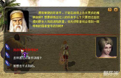 亚特大陆从来不会掉下免费的馅饼,特殊双倍经验时间必须靠你自己去争取!请大胡子教官带你去找“好身手试炼”的负责人垂暮英雄·弗兰多老爹,别以为他只是普通的山野农夫,二十年前,他可凭借敏捷的身手让一小支魔族军团全军覆灭呢!