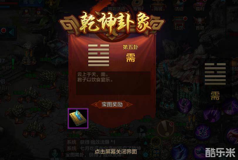 乾坤宝图是一个挖宝玩法,奖励的道具也非常丰厚,如果运气好的话得到乾坤卦,就会奖励青玉鸟坐骑。