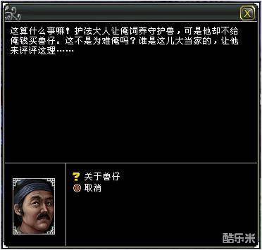 与居民交谈,可以买到守护兽。在帮会战争中,守护兽会攻击敌方对手,也会被敌方杀死。在和平时期,针对守护兽有 "训练"和"放养"两个选项。但要注意,放养过度会导致守护兽野性大发而造反,那就只有杀死它了。而训练过度会导致守护兽疲劳过度而死亡。