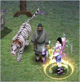 从帮会小贩那里买来兽粮扔在地上,帮会守护兽(老虎)会自己找来吃,另外我们还可以跟帮会居民对话,选择训练老虎。这样可以提高守护兽的级别。但要注意,喂养和训练过度对老虎是有恶性影响的。所以大家在进行喂养和训练时最好与帮主联系,通常帮主是会指定相关规则并委派特定成员进行这项工作的。