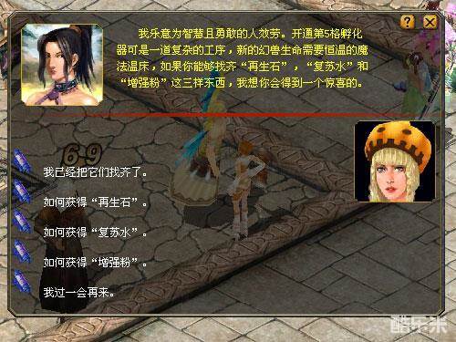 当带着“再生石”、“复苏水”以及“增强粉”去找幻兽师艾尔,她就会帮你提炼出开启第5格幻兽孵化器的珍贵物品“神奇曜石”了。