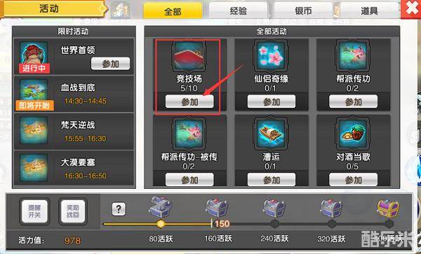 在活动界面可以找到竞技场入口。