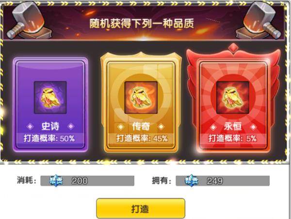 史诗级装备,传世级装备和永恒级装备打造的概率也不一样呢,见证非欧的时刻到啦~~