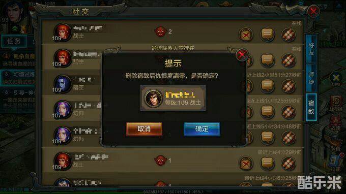 宿敌中如果是被误杀了可以点击删除宿敌,删除宿敌后仇恨值就会清零,并且解除宿敌状态。