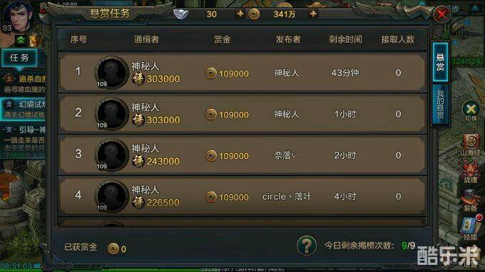 宿敌系统还有一个解决恩怨的功能,我们可以通过悬赏任务对宿敌玩家进行悬赏击杀,花费一定的银元宝就可以对指定的玩家进行悬赏击杀。