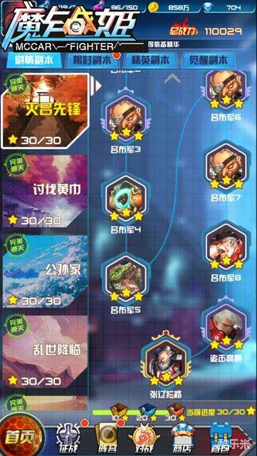 主线副本分为若干章,每章都有一个主题故事,每章中又分为若干个小节,每个小节分为三个难度,每打通一个难度便可获得一颗星(可用于主角天赋系统),只要打通每章中最后一节的第一难度便可开启下一章的故事。