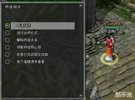 组队到各大城市、新手村“叶芷琳”处,点击师徒相关~申请拜师,等待师傅同意就可以了。