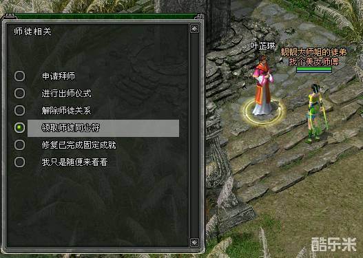 符合以上条件,师徒二人组队到叶芷琳处完成出师仪式,徒弟即可出师,出师后,徒弟成为师父的密友。