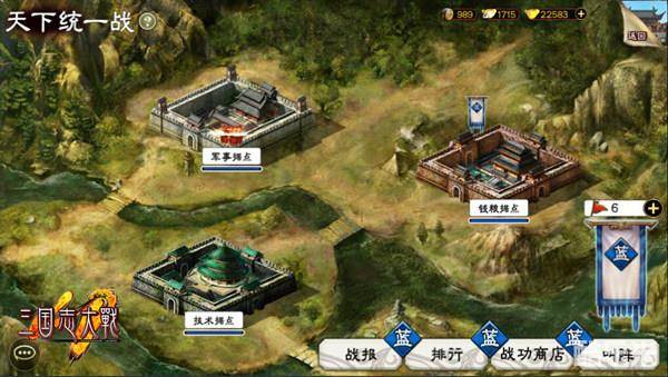 天下统一战分为“红蓝”两个阵营,分别是王道(蓝)和霸道(红),玩家选择阵营后,需要为自己的阵营争夺三座城池,每次争夺都会获取战功,战功可用于购买武将特技卡和经验卡,让武将战力得到进一步提升,是游戏中非常实用的优质资源!