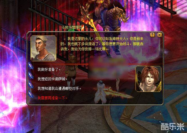 角斗场内的战斗很快就结束了,你找到角斗场管理员肯特。想让他为你安排一场战斗。