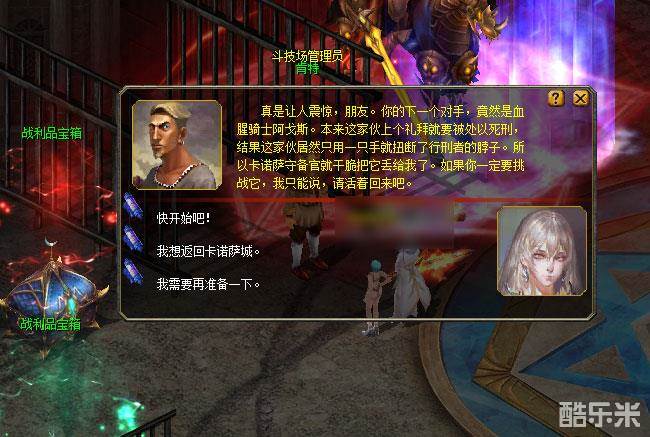 会来黑市角斗场参与挑战的勇士,都有着明确的目的,那就是为了荣耀与财富而战。现在一份如此丰厚的奖励摆在了你的面前,你怎么会放过它呢?