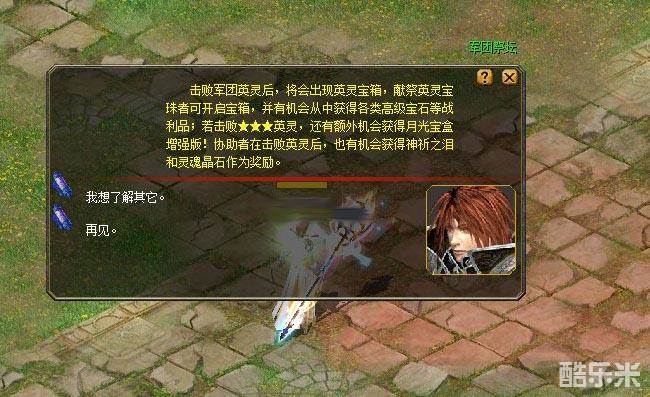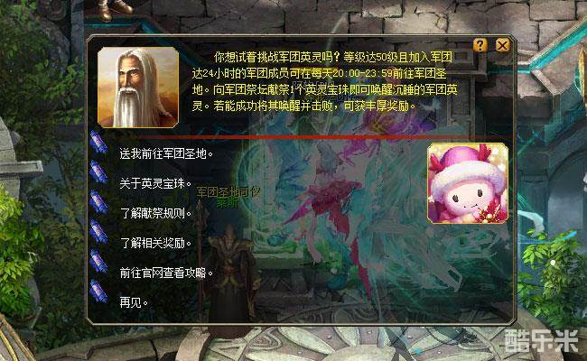 每天20:00-23:59,军团圣地司仪莱斯将会开启通往军团圣地的通道,他欢迎每个等级达50级,且加入军团超过24小时的勇士前往军团圣地挑战军团英灵。为了更好地参与其中,你决定前去莱斯处了解详情。 从莱斯口中你了解到,军团圣地内沉睡着强大的军团英灵,每当有人向军团祭坛献祭英灵宝珠时,将有机会选择唤醒1位军团英灵并向其发起挑战,若将其击败,可获得丰厚奖励。 听起来似乎有点意思,而唤醒军团英灵的关键就在这个英灵宝珠上了,那这个神秘的宝珠又从何而来呢? 从莱斯的描述中你得知,在混沌迷域中可找到这种充满英灵气息的宝珠。 一番辛苦的奔波过后,你可算获得了1个英灵宝珠,快去军团圣地用它来唤醒军团英灵吧! 眼前这个就是军团祭坛了,站在祭坛边上就能感受到军团英灵们威严的气息。 这时你想起莱斯曾提过,在献祭英灵宝珠时,唤醒★数越多的英灵,实力就越强,将其击败后,你可获得丰厚奖励的机会也越大。 献祭英灵宝珠者可开启专属的英灵宝箱,并有机会从中获得各类高级宝石等战利品;若击败★★★英灵,还有额外机会获得月光宝盒增强版!协助者在击败英灵后,也有机会获得神祈之泪和灵魂晶石作为奖励。 既然其他成员也能参与战斗,那就不怕对手有多强大,毕竟众人拾柴火焰高,打败实力越强的英灵,奖励可是越加丰厚的。几番思考过后,你决定唤醒主宰之灵(★★★)。 虽然已经对主宰之灵的实力有所预估,但没想到它竟然强大到这种地步!在长时间的苦战中,终于让你找到了一丝机会,你趁其不备,奋力一击,主宰英灵应声倒地。 于此同时,它留下了一地的奖励给挑战它的勇者们,不过其中最吸引你的还是专属于献祭者的英灵宝箱(英灵BOSS死后存在5分钟,过期消失,请及时开启宝箱噢!),快去看看你能从中获得什么战利品吧。 运气不错,一个月光宝盒增强版就这样被你收入囊中,看来军团英灵是不会亏待任何一名认真作战的勇者的。本次挑战过后,你已经开始考虑下一次献祭英灵宝珠的计划了。 | |