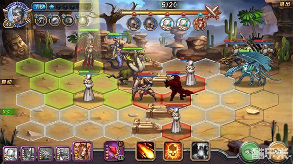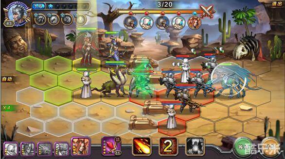 第一回合很关键,排位要向上面那样,牧师站4号位,美杜莎站2号位,开局其他等待,牧师防御,后排弓箭会打到2,4位置,故意被打拿能量。等待完毕走位如图,先杀最上面的炮手!