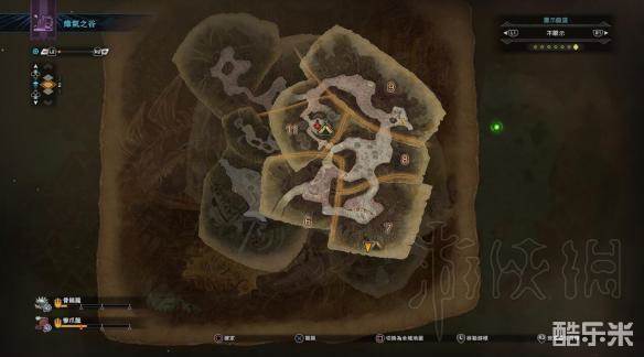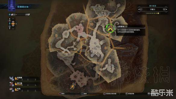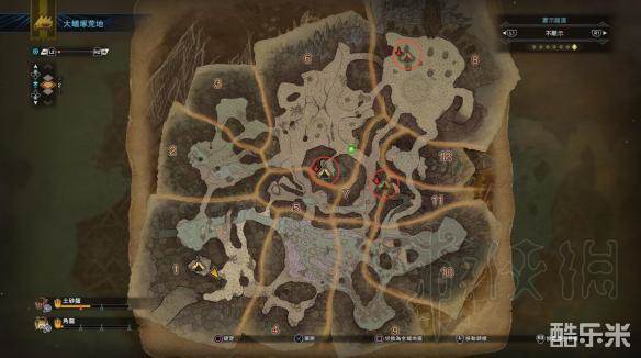 这里的猫部族「荒地守护族」在右上方营地附近(在地下哦),与上一张地图不同的是这次需要完成的任务是用网子抓三只分布在地图四周的荒地猫,必须不被发现从背后接近,不然猫会钻地逃跑。隐身斗篷无效,考验各位潜行技巧的时刻到了……完成后可以驯服冠突龙。