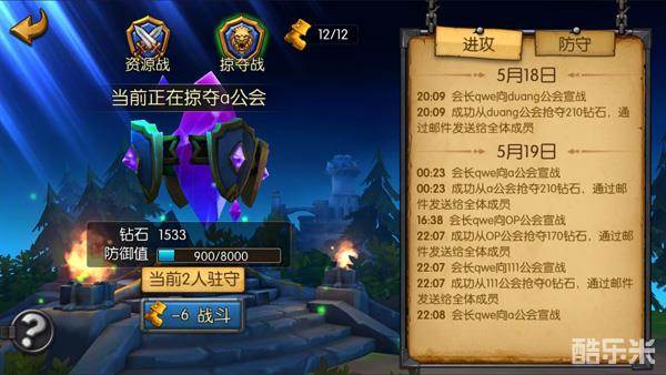 资源争夺,是公会的核心玩法,每周进行一次。玩家在争夺中抢夺资源水晶,水晶会根据公会等级产出钻石并最终回馈给公会所有成员,相当诱人的奖励哦!该玩法融合了玩家和玩家对战,玩家和BOSS对战,并分为两个阶段——周一至周五的团队BOSS战,和周六日资源掠夺战。