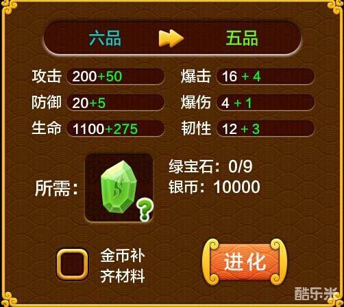 装备卡升星需要材料为绿头牌,当玩家等级达到25级开启此功能。绿头牌的获取途径:通过除妖首次获得一个,开启装备包可获得一个;宗副征讨每个BOSS每天一个;通过副本三星通关有几率掉落。