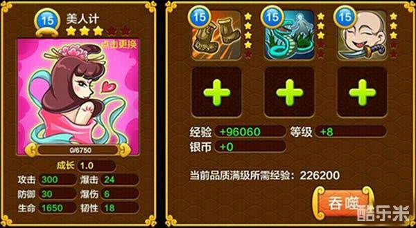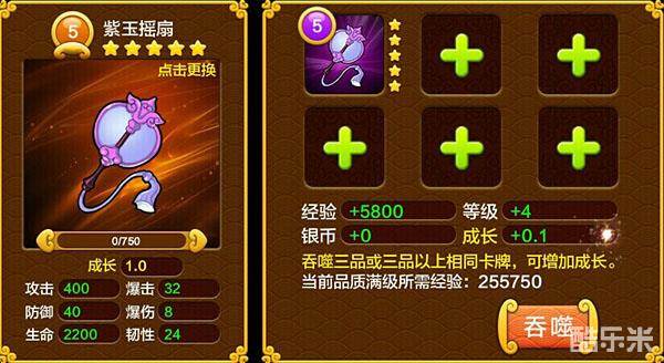 使用装备卡吞噬紫色以上的一模一样的装备卡可以增加成长值,当成长值增加后,战力也跟着提升。