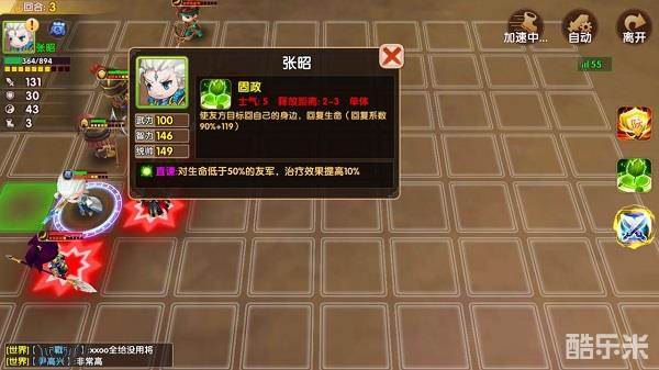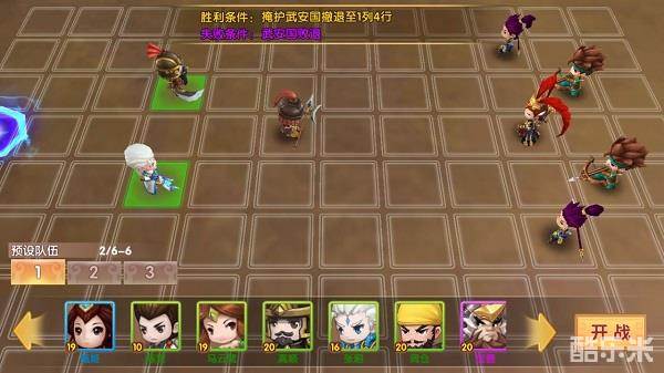 第二关的胜利条件就是掩护武安国至指定位置,所以我们只要保证武安国撤退就可以了,不用消灭敌方武将,上场武将高顺和张昭,张昭大招可快速把队员带到身边。