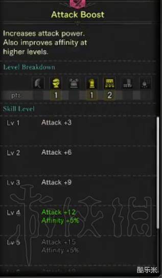 lv4煽动者:与发怒的大型怪物交战时,+16攻 12%会心。