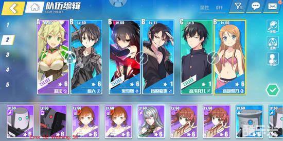 该阵容里有充当奶妈角色的莉法;清除全体减益类状态的高须龙儿;对敌方封技的黑雪姬;攻击力与暴击值高的高坂桐乃;连携cp莉法与桐人。这些角色可以有针对性的对敌方群体、前排、中排、后排造成伤害。