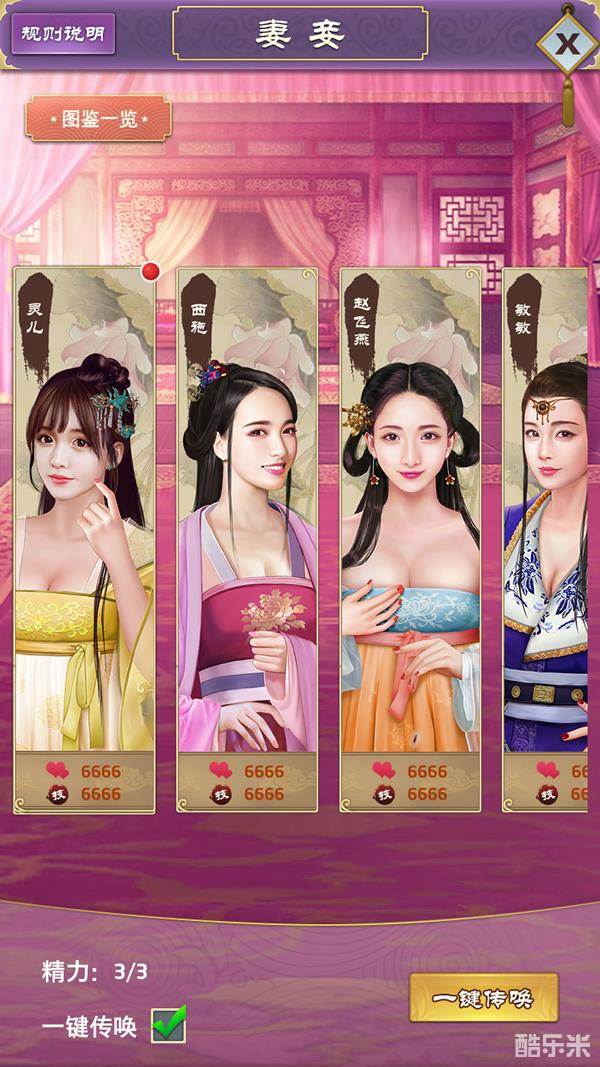 二、妻妾:妻妾多有多的好处,少也有少的好处,但必须每个妻妾的亲密度都要有20,至少可以激活前两个技能加属性。