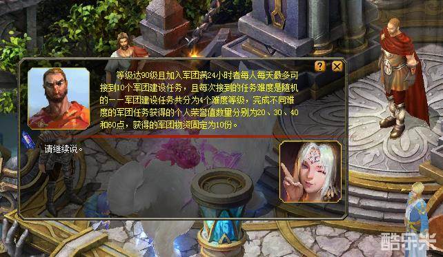 为协助王国各大军团快速发展,每天的8:00-23:59,凡军团下属冒险者(加入军团需满24小时)均可前往雷鸣大陆(244,437)军团建设总务•莱文斯处接受军团建设任务,为所在军团贡献一份力量。