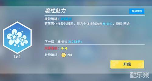 攻击增加是一个辅助型技能,对敌人无法造成任何伤害,但是却能够在释方技能后提升己方战斗组全体攻击力,持续一个回合。