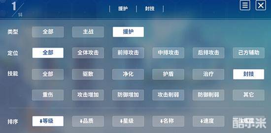 按照角色的技能释放效果,可以将游戏中的援护型角色分为全体治疗、前排攻击、后排攻击、敌方攻击削弱、己方攻击强化、敌方物防削弱、封技等类型。