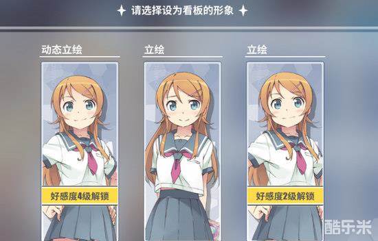 在看板形象设置界面中可以看到,更多的立绘形象需要通过好感度提升解锁。