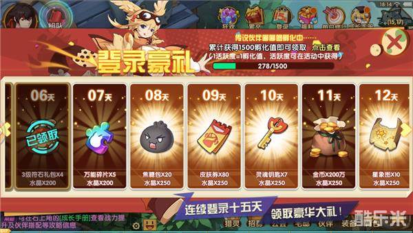 登录豪礼并不是一天算一天的,而是根据你上线的次数来领取的,所以也不会出现隔一天上线之后发行少了一天的奖励,而且奖励都挺丰厚,后续皮肤劵什么都会送。