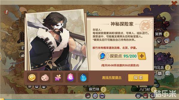探索玩法是每天闲暇时候挂机用的,简单来说,你可以选择一张图,每张图能够概率出什么伙伴的碎片和奖励是有提示的,并且每次探索必然会拿到数量不等的鲜肉包,并且支持挂机,直到次数消耗完,也不算很繁琐。