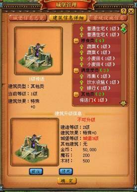 点击传送建筑后,系统会弹出“城堡管理”页面。