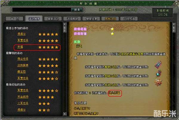 1.首先在帮助锦囊-“活动推荐”一栏中点击“进入祈福”,进入祈福界面。