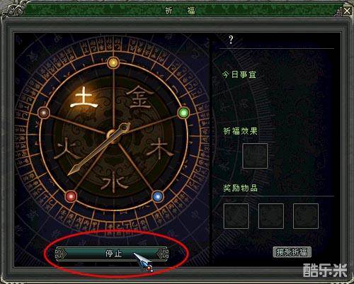 注:若角色未点击“停止按钮”获得转动结果,则下次进入祈福界面可以重新开始该次转动。