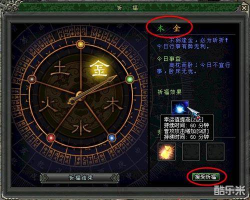 根据第一次和第二次转动,可以获得今天的祈福结果。 点击“接受祈福”可以获得祈福效果和祈福奖励。