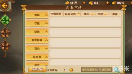 市场(关闭当前背包界面,打开市场界面,可以购买和出售非绑定道具,详见截图8-1至8-2)