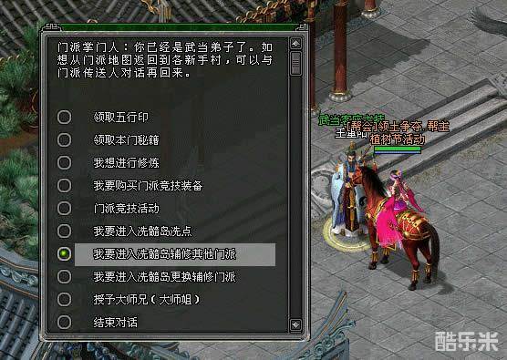 1.到自己当前门派的掌门人处,选择“我要进入洗髓岛辅修其他门派”,进入洗髓岛。