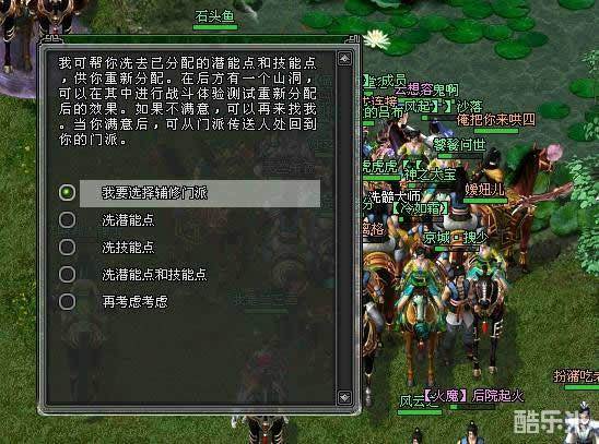 2.如果角色符合门派三修的条件,则可以和洗髓大师对话,选择你要辅修的门派,并且试验潜能、技能点加点,如果不满意可以在岛上继续更换辅修门派。