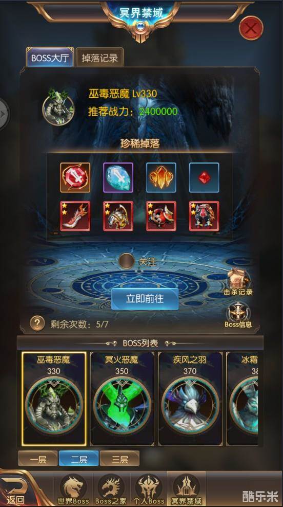 所以我们应该根据自己的战力合理的选择并计算最优的boss,例如击杀LV320的boss需要5分钟左右的战斗时间,那么怒气值一共就55,那么下一个boss我们可以选择LV270的,击杀时间大约3分钟,加起来怒气值接近100但仍未超过,所以这个时候我们选择我们战力能在怒气满之前击杀的boss去击杀,如不能保证则选择最低级的LV230的boss,这样我们就能利用一次进入冥界禁域机会去最大化我们的利益啦!