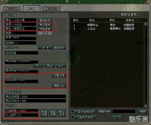 帮会股份在帮会界面显示如下: