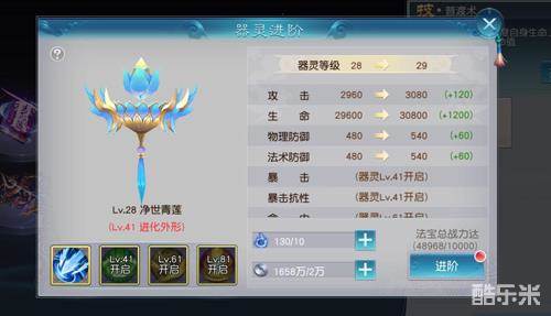 器灵神殿每天可打两次,可获得凡品器魂,用于器灵进阶。器灵每进阶一次,人物都能获得生命和攻击的加成(后期还会增加其他属性),而器灵每进阶20级,其外形就能获得更为炫酷的进化,而且还能解锁总共4个器灵技能,让你的战力大幅提升。