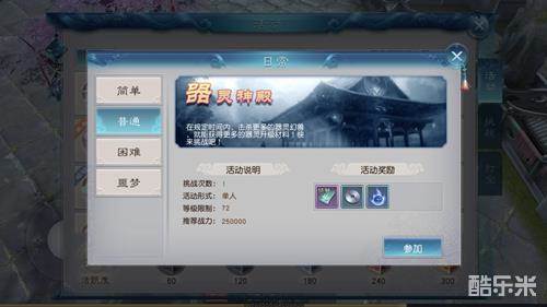 器灵神殿跟其他副本一样,也是分为四个难度。玩家达到62级之后解锁副本,该副本是单人副本,每天两次挑战机会。副本奖励和评分有关联,通关时间越短评分越高,得到的奖励也就越好。随着等级的提高,关卡能解锁更高难度,当然获取的奖励也更丰富。