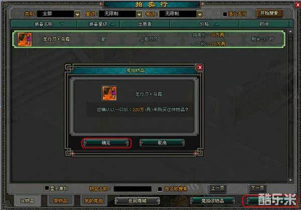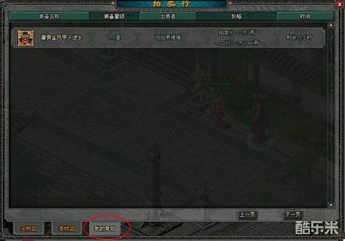 注意:1.出售的装备未到时间是不能取出的,如果需要拿回装备只能自己一口价买下。拍卖时限到了以后物品会通过邮件发送给您;