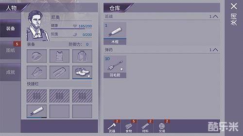 在Neil仓库右侧的装备栏中,会收纳好玩家在户外探险收集到的所有资源,根据武器、食物、材料、交易四大块分类。