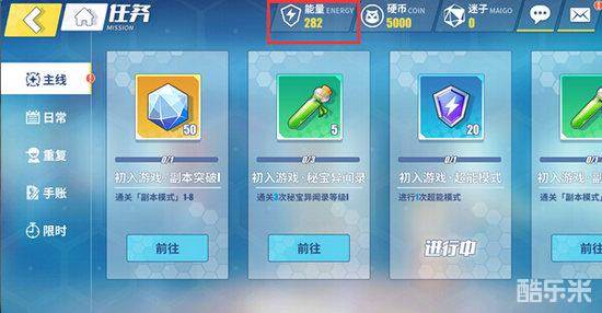 能量消耗后需要一段时间才能回复,也可以通过完成任务获得、迷子兑换来进行快速补充!