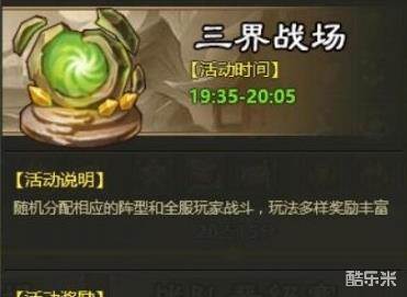 1、 活动开启后,玩家点击参与活动传送至三界战场,战场中有神、魔、人三个阵营
