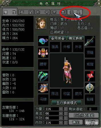 按F1打开角色属性界面可以查看到上方有“信息”按键,点击后填写个人相关信息。