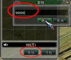 3 、存取金钱:点击“存钱”按钮,输入金钱数额,再点击“确定”,可将背包的银两存入储物箱。