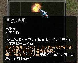 注:每人每天使用的前10个福袋可以获得金钱、银两或经验等丰厚奖励,每月充值达到15元,当月剩余天数每天都可以额外多开10个福袋。